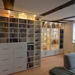 Ein wichtiger Aspekt, worauf bei der Planung Wert gelegt wurde: Es sollte viel Stauraum für DVDs und CDs geschafft werden. Mit dem eingebauten Getränkekühlschrank stehen bei einem geselligen Abend im Wohnzimmer stets gekühlte Getränke bereit und der Weg in die Küche bleibt erspart.